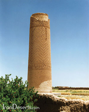 در بخش انتهايي بقاياي مرسوم به شرفه نمايان است و قسمتهايي از تزيينات زير شرفه و پايههاي چوبي آن هنوز باقي مانده از جبهه غربي ميل درگاهي باز است كه جهت دسترسي به روي شرفه استفاده ميشده است. كتيبهي آجري آن به خط كوفي قابل خواندن نيست اما معماري آن به سبك دورهي سلجوقي ميباشد.4
